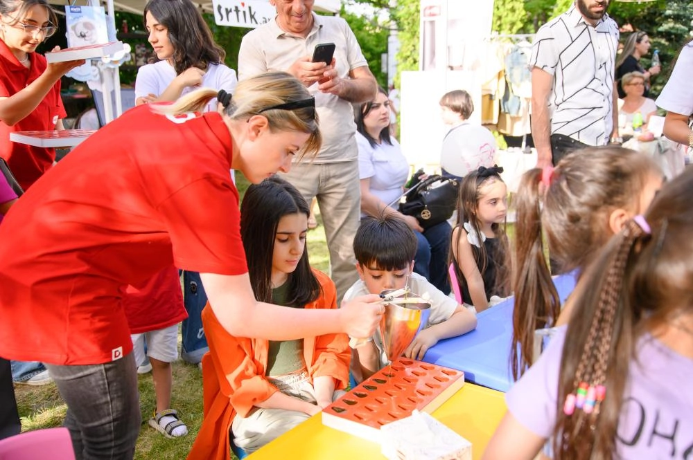 Ինչպես նախորդ տարի, այս անգամ ևս մաստեր կլասի շրջանակում տաղավարը վերածել էինք փոքրիկ արտադրամասի, որտեղ երեխաներն իրենց ձեռքերով պատրաստում էին համեղ սենդվիչներ, գունավոր մարմելադներ ու սունկիկներ՝ լինելով այդ արտադրամասի աշխատակիցները։ Այդ րոպեները ոչ միայն ուրախություն պարգևեցին փոքրիկներին, այլև սովորեցրին աշխատասիրություն ու ստեղծագործ մոտեցում։