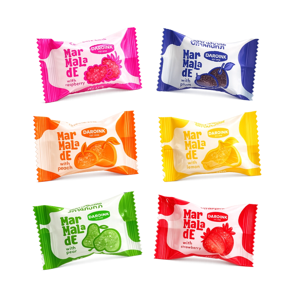 Բաղադրությունը՝ շաքարավազ, եգիպտացորենի մաթ, խմելու ջուր, ագար, թթվայնության կարգավորիչ` կիտ-րոնաթթու (E330), սննդային բուրավետիչներ` «կիտրոն», «սալոր», «ազնվամորի», «մանդալին», «ելակ», «տանձ», «խնձոր», «դեղձ», սննդային ներկանյութեր` «դեղին - նարնջագույն», «կարմիր», «կապույտ», «կանաչ»: 100գ մթերքի սննդային արժեքը (միջին արժեքները). սպի-տակուցներ-0.1գ, ճարպեր-0.1գ, ածխաջրեր- 76գ: Էներգետիկ արժեքը (կալորիականությունը)- 1297կՋ (305կկալ): Պահել (15±5)0C և 75-85% օդի հարաբերա-կան խոնավության պայմաններում: Պահման ժամկետը 90 օր: Արտադրված է Հայաստանում